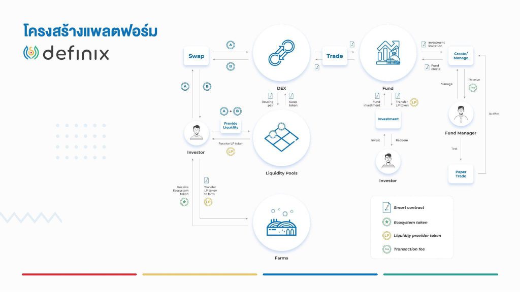 그리고 Definix의 하이라이트는 이 펀드가 탈중앙화된 금융 프로토콜을 기반으로 설계되었다는 것입니다. 이는 자산이 여러 주체에 의해 관리되며 플랫폼에서의 모든 활동이 추적가능하고, 투명하며, 변동하기 쉬운 스마트컨트랙트 상에서 진행되는 것을 의미합니다.
